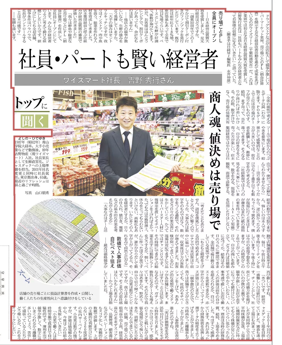 *写真は、今日3月2日付の日経MJ。全員で情報を共有することが成果につながったというワイズマートさんの記事です