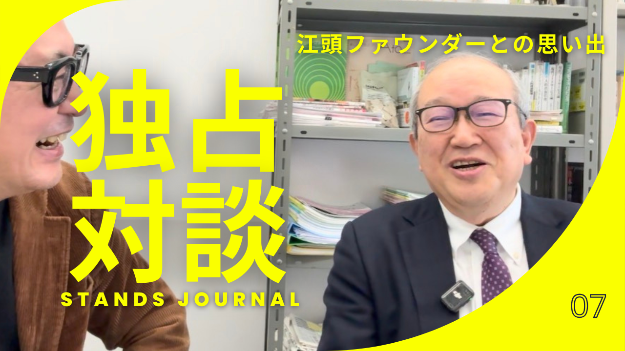 【STANDS JOURNAL vol.7】今回は、元・ロイヤルホールディングス常務執行役員の用松 靖弘さん(現・中村学園大学特任教授)をゲストにお迎えしての後編。用松さんは、新卒でロイヤルホールディングスに入社し、以来、ファウンダー(創業者)である江頭匡一さんから、直接の指導を受けてきた方です。伝説の創業者・江頭 匡一さんの「高いスタンダード」について語っていただいています。亡くなられて21年経った今も色褪せない「江頭イズム」。ぜひご覧ください。