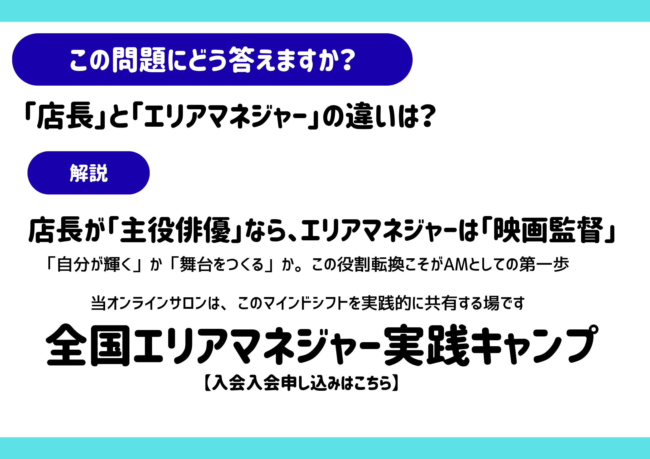 *写真はオンラインサロン「全国エリアマネジャー実践キャンプ」の会員勧誘POPです。背伸びはしてません(笑)